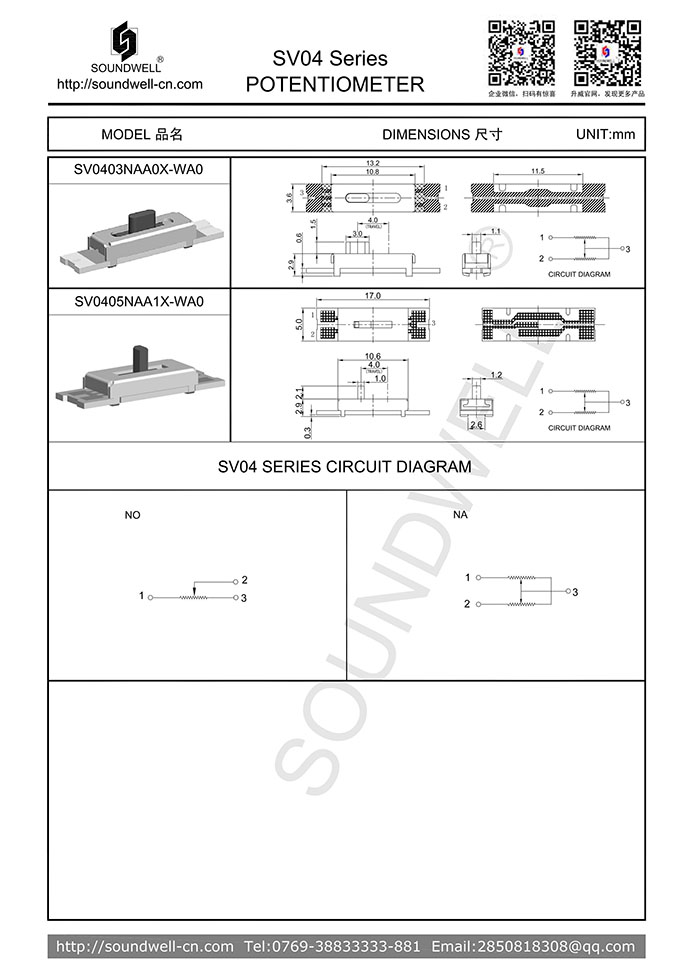 1. Total Resistance Range: 1KΩ<R<1MΩ, ±20%; 1KΩ≥R or R≥1MΩ, ±30%