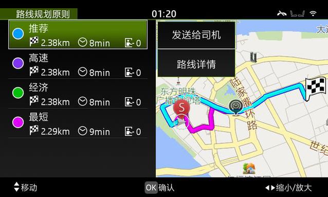 Car has four screens, which are located in the instrument panel, center console and front seat back (ie, the rear screen). Four-screen interaction, can provide navigation information or location independent inquiry services were to be handed by the president sitting in the back of control: direct navigation key to send to a location in front of the driver's instrument panel and central screen.