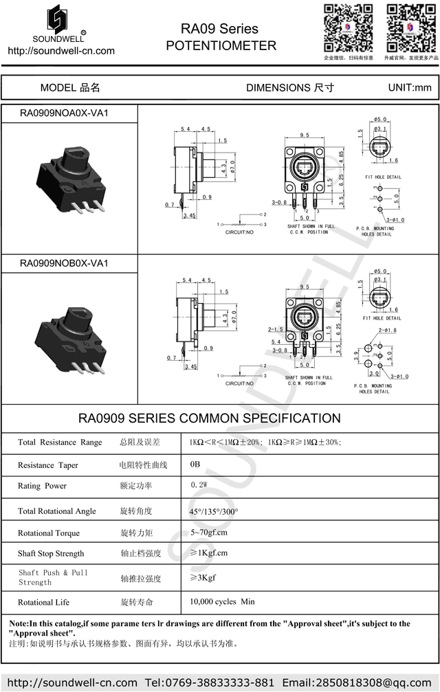1. Total Resistance Range: 1KΩ<R<1MΩ, ±20%; 1KΩ≥R or R≥1MΩ, ±30%