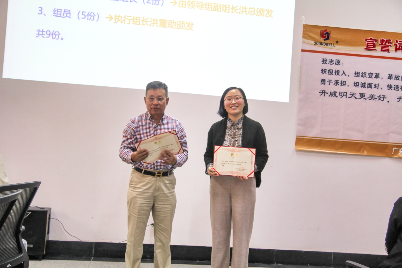 隨后洪董事長、洪總經(jīng)理及洪董助給任命此次項目負(fù)責(zé)人頒發(fā)聘書。