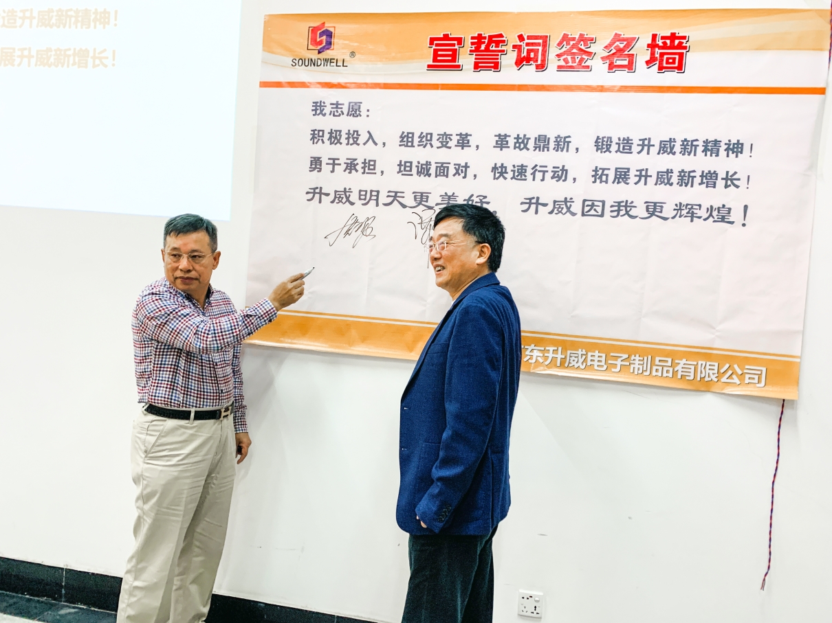 項目會10點正式啟動,組織系統(tǒng)管理變革項目領(lǐng)導(dǎo)小組負(fù)責(zé)人洪金鑣董事長為此次項目啟動講話,回顧了升威電子歷經(jīng)的三個十年,升威電子由原材料進(jìn)口來料加工,到供應(yīng)鏈國產(chǎn)化,到后來升威自主研發(fā)新產(chǎn)品,以及主導(dǎo)制定編碼器及電位器國家標(biāo)準(zhǔn)一路的轉(zhuǎn)型與進(jìn)步。洪金鑣董事長對此次變革有信心,并給予下一個十年高度期望,鼓勵升威電子的全體員工認(rèn)真學(xué)習(xí),付諸實踐,在變革中成長,上下一心,團(tuán)結(jié)協(xié)作,助力企業(yè)飛速增長。
